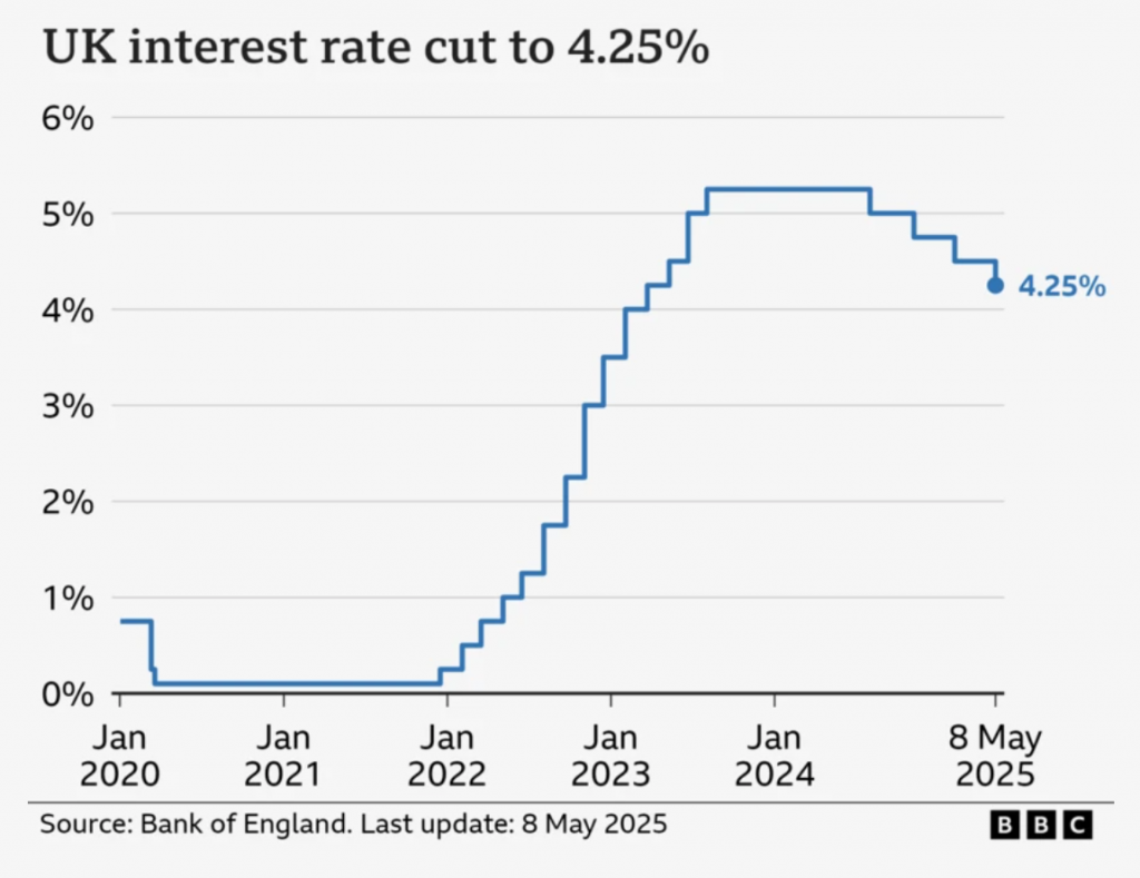 Bank of England cuts interest rate to 4.25% and hints at more cuts to come