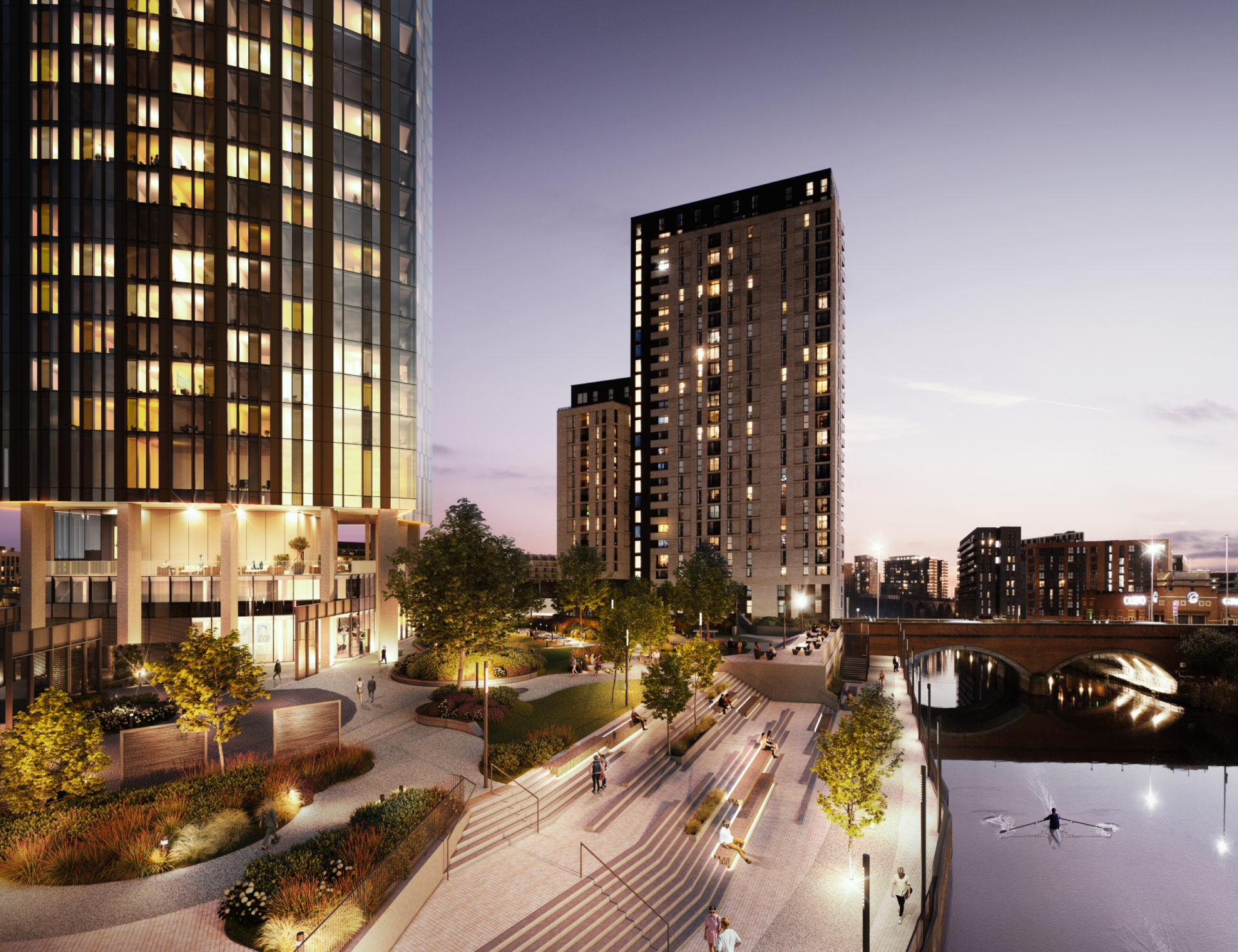 项目坐落于市中心黄金地段,举步即达曼彻斯特核心精华。金融重镇Spinningfields、Deansgate丰富的餐饮酒吧区以及充满文化气息的St John’s区皆在步行范围之内,尽享都市繁华。 - 1.6英亩私家园林绿地
